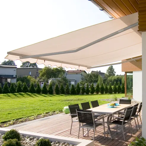Elektrický pohon zabezpečuje plný komfort ovládania. Rozťahovanie a sťahovanie systému je riadené diaľkovo a je rýchle a tiché. Elektrický pohon umožňuje používať automatiku pre počasie a systém Smart Home